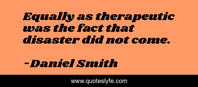 This page presents the quote "Equally as therapeutic was the fact that disaster did not come.". Author of this quote is Daniel Smith. This quote is about anxiety, therapy,.