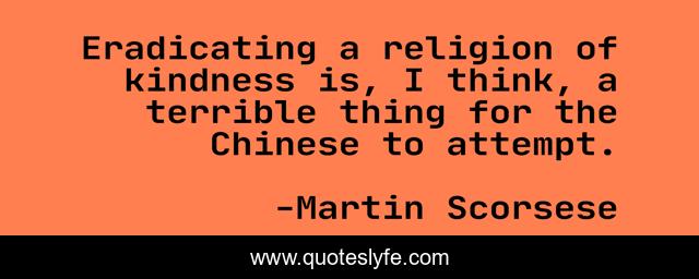 This page presents the quote "Eradicating a religion of kindness is, I think, a terrible thing for the Chinese to attempt.". Author of this quote is Martin Scorsese. This quote is about kindness, think, terrible,.