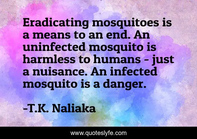 "T.K. Naliaka Quotes." Quoteslyfe.com, 2025. Sun. 07 Dec. 2025. <https://www.quoteslyfe.com/quote/Eradicating-mosquitoes-is-a-means-to-an-176863>.