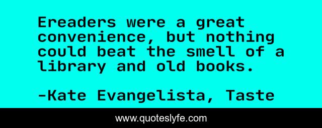 This page presents the quote "Ereaders were a great convenience, but nothing could beat the smell of a library and old books.". Author of this quote is Kate Evangelista, Taste. .