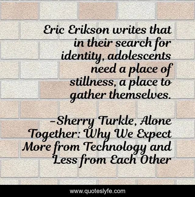 "Sherry Turkle, Alone Together: Why We Expect More from Technology and Less from Each Other Quotes." Quoteslyfe.com, 2025. Fri. 05 Dec. 2025. <https://www.quoteslyfe.com/quote/Eric-Erikson-writes-that-in-their-search-114858>.