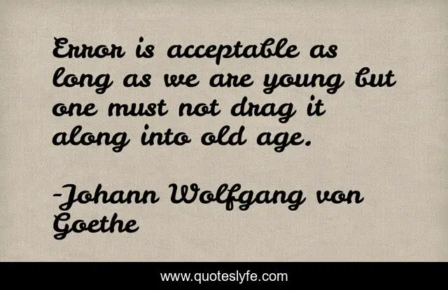 This page presents the quote "Error is acceptable as long as we are young but one must not drag it along into old age.". Author of this quote is Johann Wolfgang von Goethe. This quote is about old age, long, young,.