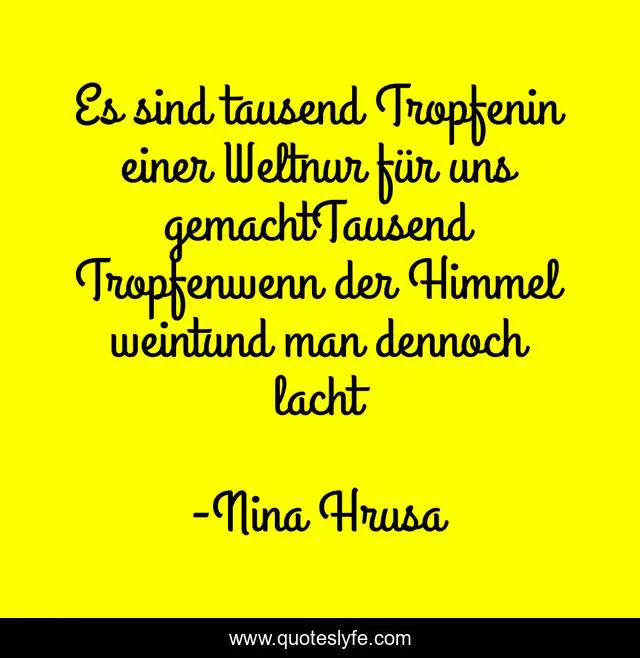 "Nina Hrusa Quotes." Quoteslyfe.com, 2025. Fri. 05 Dec. 2025. <https://www.quoteslyfe.com/quote/Es-sind-tausend-Tropfenin-einer-Weltnur-f-15171>.