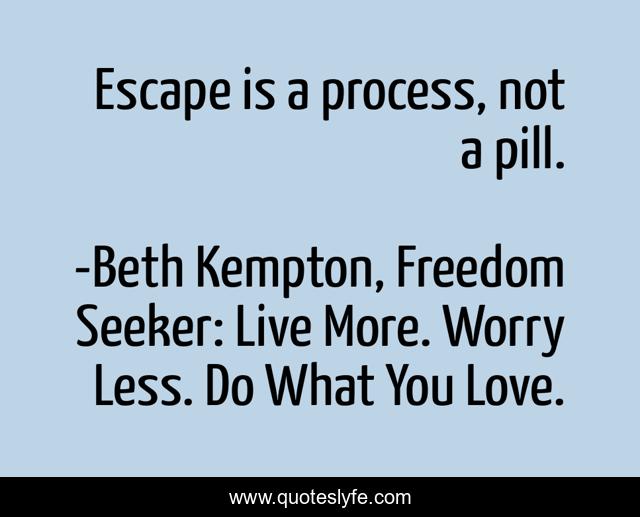 "Beth Kempton, Freedom Seeker: Live More. Worry Less. Do What You Love. Quotes." Quoteslyfe.com, 2025. Fri. 05 Dec. 2025. <https://www.quoteslyfe.com/quote/Escape-is-a-process-not-a-pill-14944>.