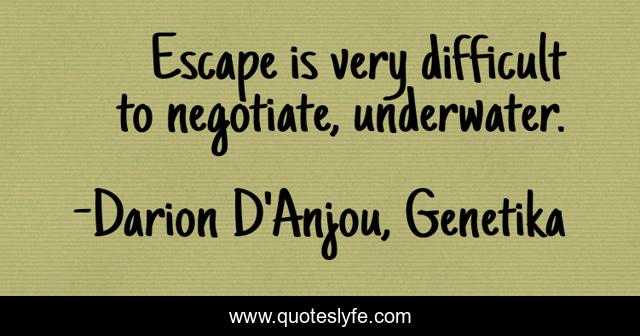 "Darion D'Anjou, Genetika Quotes." Quoteslyfe.com, 2025. Mon. 08 Dec. 2025. <https://www.quoteslyfe.com/quote/Escape-is-very-difficult-to-negotiate-underwater-245954>.