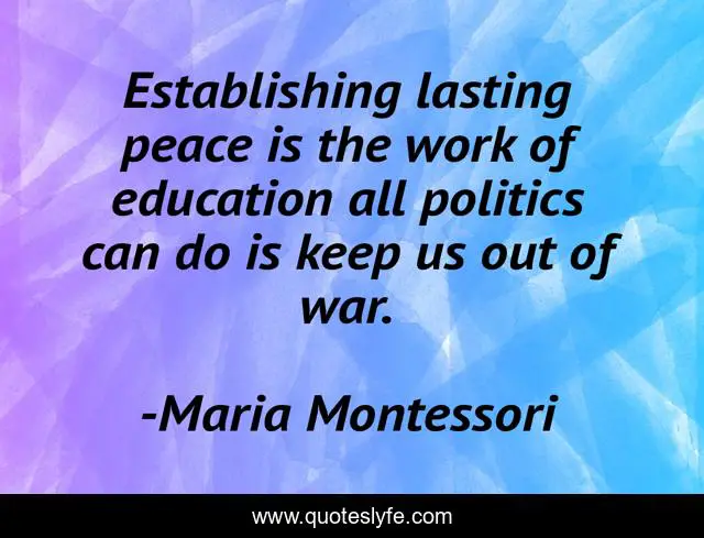 This page presents the quote "Establishing lasting peace is the work of education all politics can do is keep us out of war.". Author of this quote is Maria Montessori. This quote is about work, education, peace,.