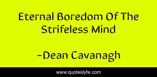 This page presents the quote "Eternal Boredom Of The Strifeless Mind". Author of this quote is Dean Cavanagh. .