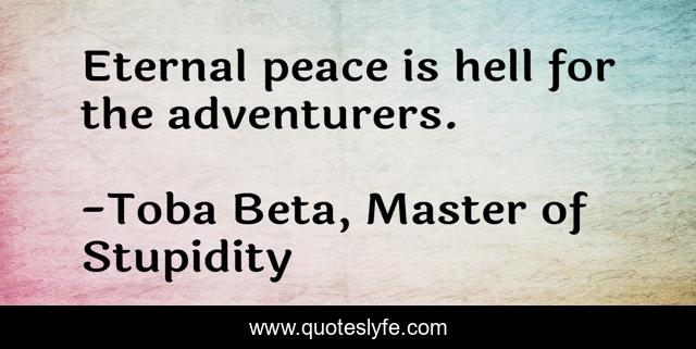 This page presents the quote "Eternal peace is hell for the adventurers.". Author of this quote is Toba Beta, Master of Stupidity. This quote is about adventurer, peace, eternal, hell,.