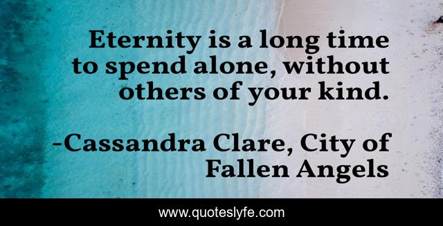 This page presents the quote "Eternity is a long time to spend alone, without others of your kind.". Author of this quote is Cassandra Clare, City of Fallen Angels. This quote is about loneliness, cassandra-clare, vampire, camille-belcourt, friends, city-of-fallen-angels,.