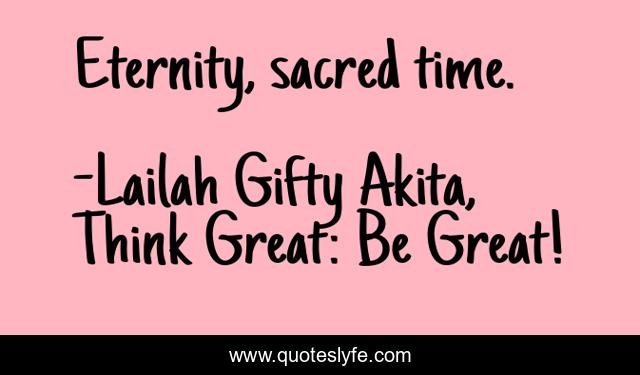 "Lailah Gifty Akita, Think Great: Be Great! Quotes." Quoteslyfe.com, 2025. Mon. 08 Dec. 2025. <https://www.quoteslyfe.com/quote/Eternity-sacred-time-62632>.