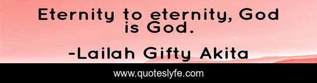 This page presents the quote "Eternity to eternity, God is God.". Author of this quote is Lailah Gifty Akita. This quote is about eternity, faith, philosophy-of-life, god, religion,.