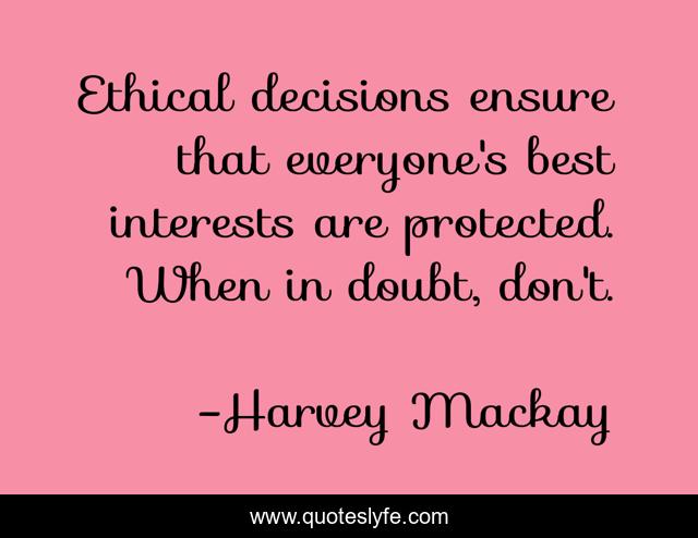 This page presents the quote "Ethical decisions ensure that everyone's best interests are protected. When in doubt, don't.". Author of this quote is Harvey Mackay. This quote is about doubt, decisions,.