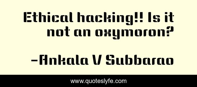 "Ankala V Subbarao Quotes." Quoteslyfe.com, 2025. Fri. 05 Dec. 2025. <https://www.quoteslyfe.com/quote/Ethical-hacking-Is-it-not-an-oxymoron-205490>.