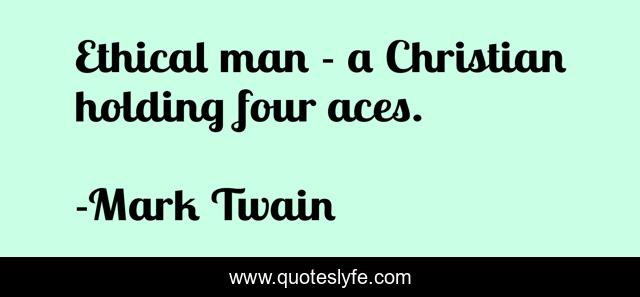 This page presents the quote "Ethical man - a Christian holding four aces.". Author of this quote is Mark Twain. This quote is about christians, christianity,.