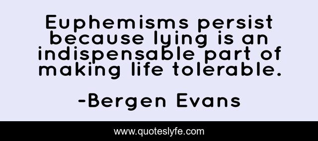 This page presents the quote "Euphemisms persist because lying is an indispensable part of making life tolerable.". Author of this quote is Bergen Evans. This quote is about language-awareness, euphemisms, bergen-evans, life, lying,.