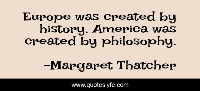 This page presents the quote "Europe was created by history. America was created by philosophy.". Author of this quote is Margaret Thatcher. This quote is about europe, america, philosophy,.