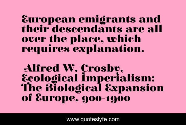 "Alfred W. Crosby, Ecological Imperialism: The Biological Expansion of Europe, 900-1900 Quotes." Quoteslyfe.com, 2025. Mon. 08 Dec. 2025. <https://www.quoteslyfe.com/quote/European-emigrants-and-their-descendants-are-all-70431>.