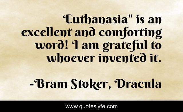 This page presents the quote "Euthanasia" is an excellent and comforting word! I am grateful to whoever invented it.". Author of this quote is Bram Stoker, Dracula. .
