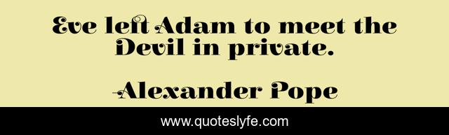 This page presents the quote "Eve left Adam to meet the Devil in private.". Author of this quote is Alexander Pope. This quote is about men, women,.