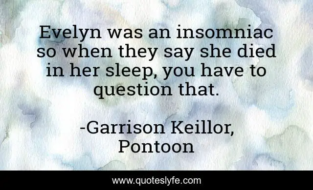 This page presents the quote "Evelyn was an insomniac so when they say she died in her sleep, you have to question that.". Author of this quote is Garrison Keillor, Pontoon. .