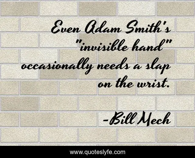 This page presents the quote "Even Adam Smith's "invisible hand" occasionally needs a slap on the wrist.". Author of this quote is Bill Mech. This quote is about libertarianism, economics, government-regulation,.