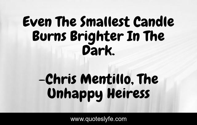 "Chris Mentillo, The Unhappy Heiress Quotes." Quoteslyfe.com, 2025. Mon. 08 Dec. 2025. <https://www.quoteslyfe.com/quote/Even-The-Smallest-Candle-Burns-Brighter-In-150855>.