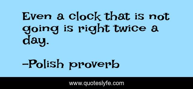 This page presents the quote "Even a clock that is not going is right twice a day.". Author of this quote is Polish proverb. .