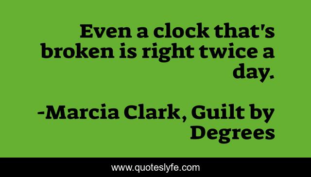 "Marcia Clark, Guilt by Degrees Quotes." Quoteslyfe.com, 2025. Fri. 05 Dec. 2025. <https://www.quoteslyfe.com/quote/Even-a-clock-that-s-broken-is-239637>.