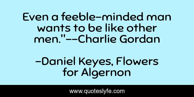 This page presents the quote "Even a feeble-minded man wants to be like other men."--Charlie Gordan". Author of this quote is Daniel Keyes, Flowers for Algernon. This quote is about enthusiasm, inspirational, man,.