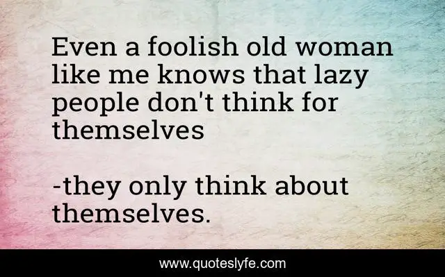 "they only think about themselves. Quotes." Quoteslyfe.com, 2025. Sat. 06 Dec. 2025. <https://www.quoteslyfe.com/quote/Even-a-foolish-old-woman-like-me-247711>.