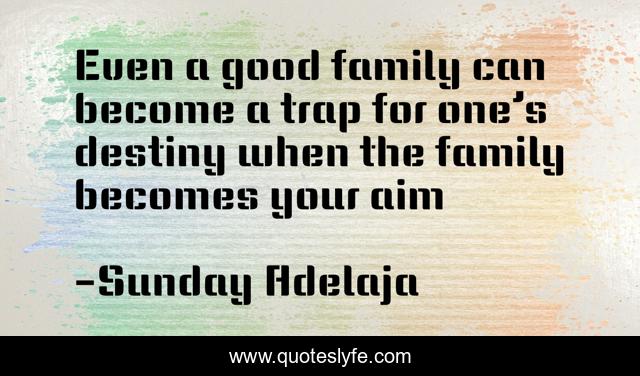 This page presents the quote "Even a good family can become a trap for one’s destiny when the family becomes your aim". Author of this quote is Sunday Adelaja. This quote is about marriage, destiny, family, distraction,.