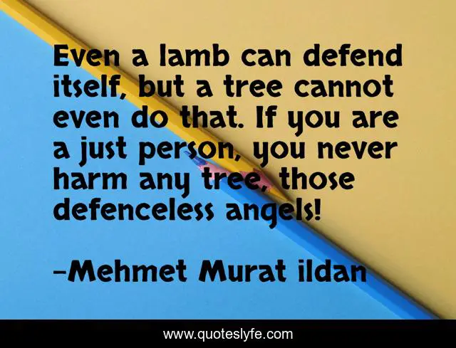 This page presents the quote "Even a lamb can defend itself, but a tree cannot even do that. If you are a just person, you never harm any tree, those defenceless angels!". Author of this quote is Mehmet Murat ildan. .