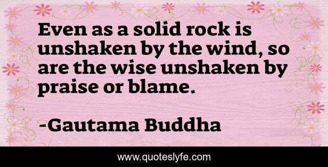 This page presents the quote "Even as a solid rock is unshaken by the wind, so are the wise unshaken by praise or blame.". Author of this quote is Gautama Buddha. .