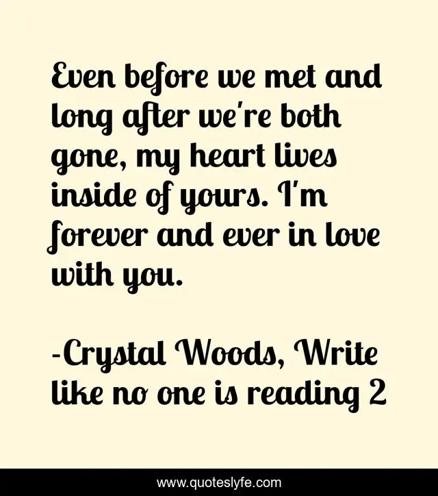 "Crystal Woods, Write like no one is reading 2 Quotes." Quoteslyfe.com, 2025. Sun. 07 Dec. 2025. <https://www.quoteslyfe.com/quote/Even-before-we-met-and-long-after-18298>.