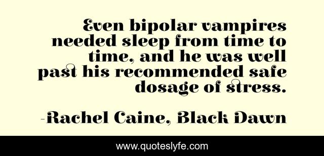 This page presents the quote "Even bipolar vampires needed sleep from time to time, and he was well past his recommended safe dosage of stress.". Author of this quote is Rachel Caine, Black Dawn. This quote is about myrnin, humor, vampires,.