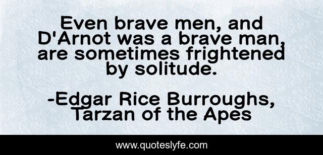 This page presents the quote "Even brave men, and D'Arnot was a brave man, are sometimes frightened by solitude.". Author of this quote is Edgar Rice Burroughs, Tarzan of the Apes. This quote is about fear, solitude,.
