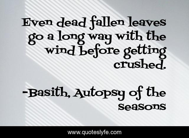 "Basith, Autopsy of the seasons Quotes." Quoteslyfe.com, 2025. Tue. 09 Dec. 2025. <https://www.quoteslyfe.com/quote/Even-dead-fallen-leaves-go-a-long-191935>.