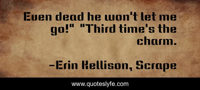 This page presents the quote "Even dead he won't let me go!" "Third time's the charm.". Author of this quote is Erin Kellison, Scrape. This quote is about nightmares, oneiros, paranormal, reveler, dreamscape,.
