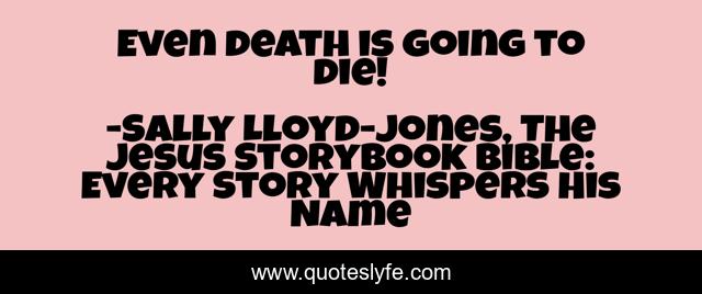 "Sally Lloyd-Jones, The Jesus Storybook Bible: Every Story Whispers His Name Quotes." Quoteslyfe.com, 2025. Sat. 06 Dec. 2025. <https://www.quoteslyfe.com/quote/Even-death-is-going-to-die-183502>.