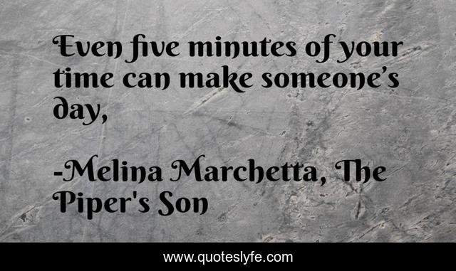 This page presents the quote "Even five minutes of your time can make someone’s day, ". Author of this quote is Melina Marchetta, The Piper's Son. This quote is about 5-minutes, day,.