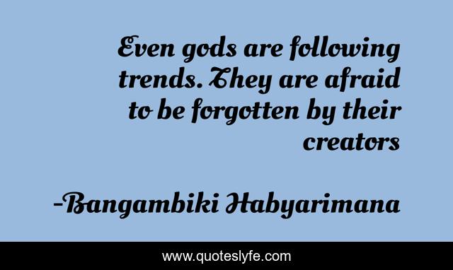 This page presents the quote "Even gods are following trends. They are afraid to be forgotten by their creators". Author of this quote is Bangambiki Habyarimana. This quote is about faith, belief, god, trends, god-qualities, gods, trendy,.