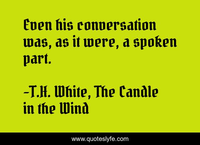 "T.H. White, The Candle in the Wind Quotes." Quoteslyfe.com, 2025. Tue. 09 Dec. 2025. <https://www.quoteslyfe.com/quote/Even-his-conversation-was-as-it-were-258104>.