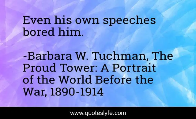 "Barbara W. Tuchman, The Proud Tower: A Portrait of the World Before the War, 1890-1914 Quotes." Quoteslyfe.com, 2025. Fri. 05 Dec. 2025. <https://www.quoteslyfe.com/quote/Even-his-own-speeches-bored-him-92622>.