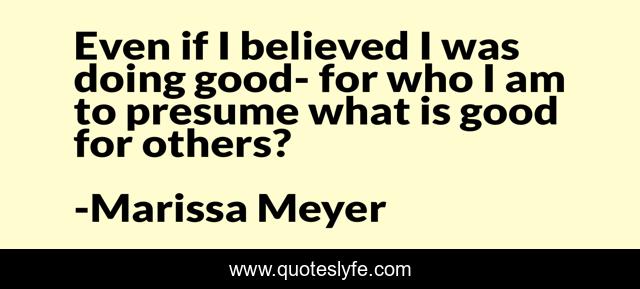 This page presents the quote "Even if I believed I was doing good- for who I am to presume what is good for others?". Author of this quote is Marissa Meyer. This quote is about marissa-meyer, winter,.