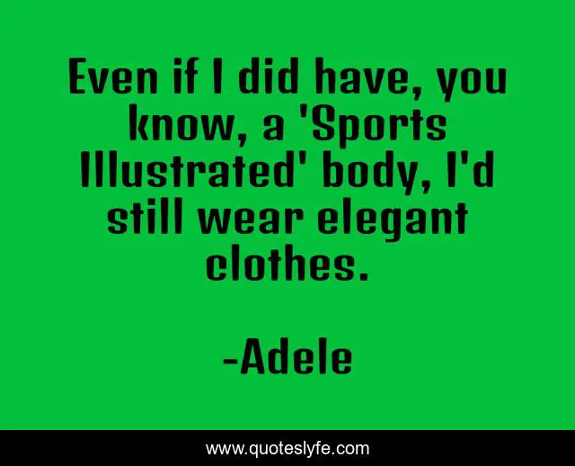 This page presents the quote "Even if I did have, you know, a 'Sports Illustrated' body, I'd still wear elegant clothes.". Author of this quote is Adele. This quote is about body, clothes,.