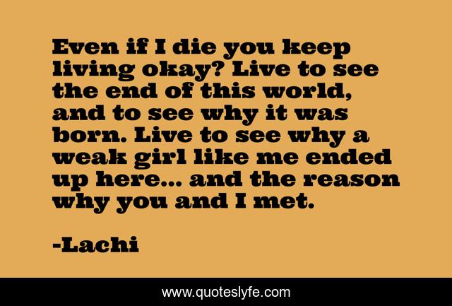 "Lachi Quotes." Quoteslyfe.com, 2025. Sat. 06 Dec. 2025. <https://www.quoteslyfe.com/quote/Even-if-I-die-you-keep-living-159898>.