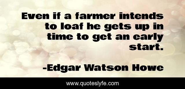 This page presents the quote "Even if a farmer intends to loaf he gets up in time to get an early start.". Author of this quote is Edgar Watson Howe. .