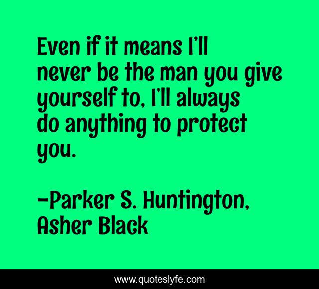 This page presents the quote "Even if it means I’ll never be the man you give yourself to, I’ll always do anything to protect you.". Author of this quote is Parker S. Huntington, Asher Black. This quote is about mafia, love, alpha-male, protection, safety, mafia-romance, mafia-princess, affection,.