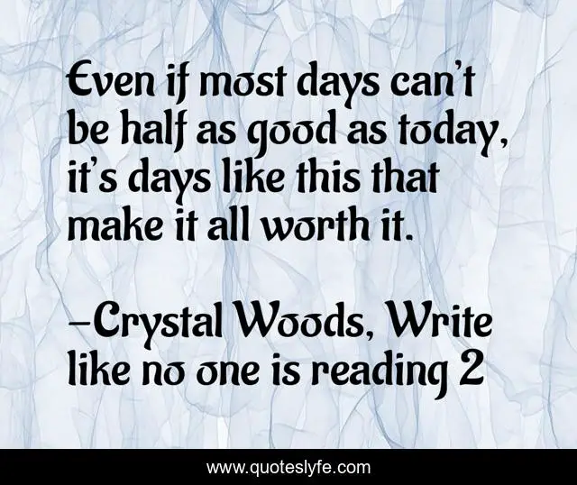 "Crystal Woods, Write like no one is reading 2 Quotes." Quoteslyfe.com, 2025. Fri. 05 Dec. 2025. <https://www.quoteslyfe.com/quote/Even-if-most-days-can-t-be-120445>.