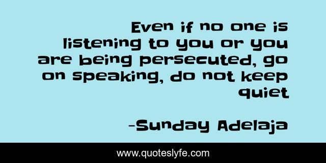 This page presents the quote "Even if no one is listening to you or you are being persecuted, go on speaking, do not keep quiet". Author of this quote is Sunday Adelaja. This quote is about life, calling, purpose, goals, fulfillment,.